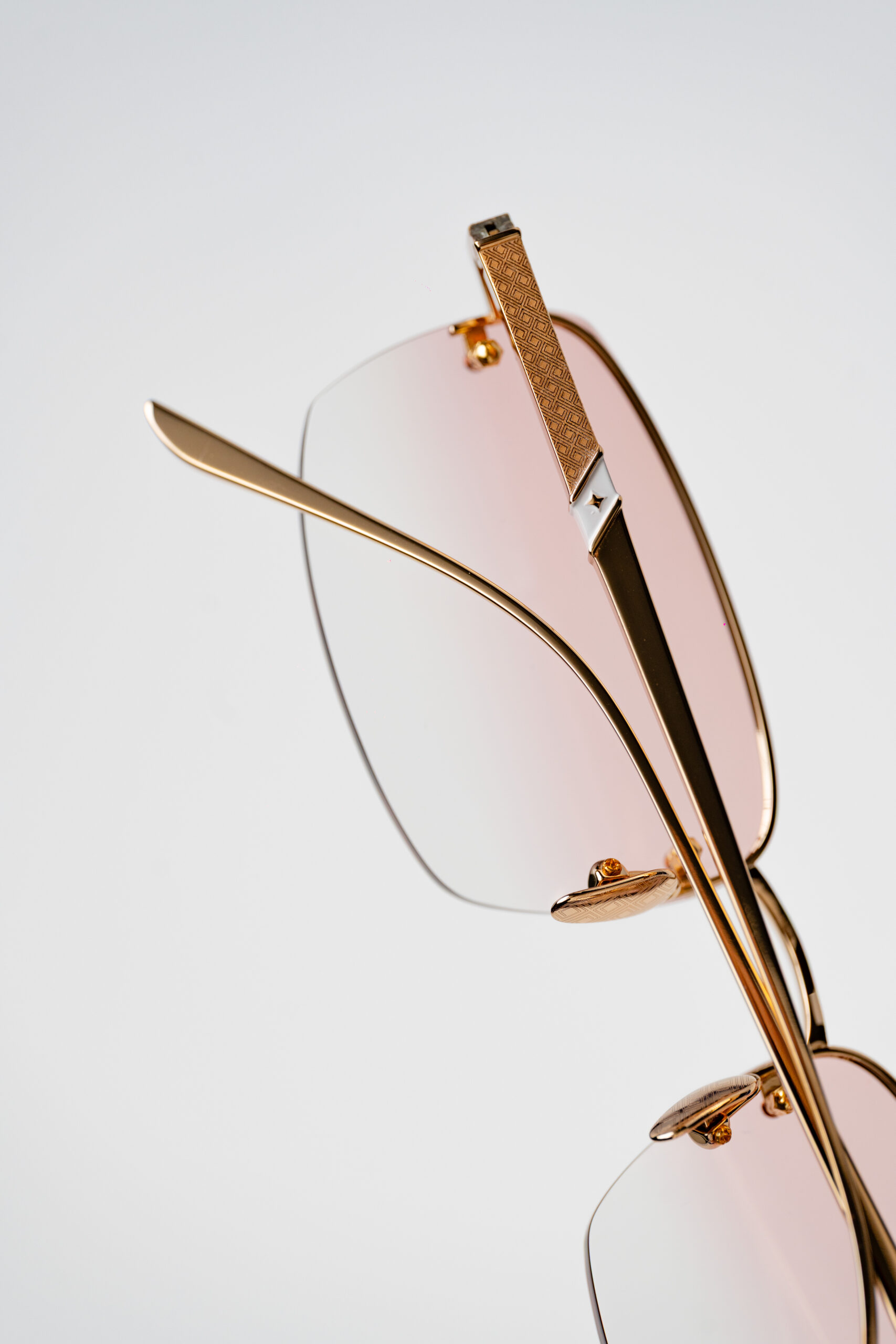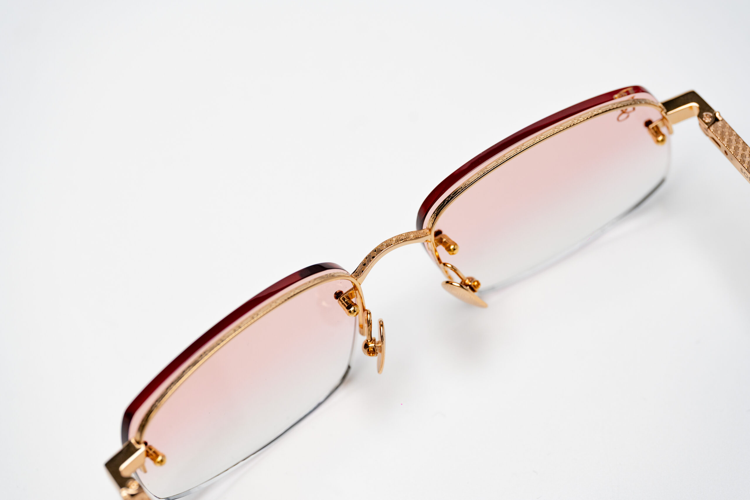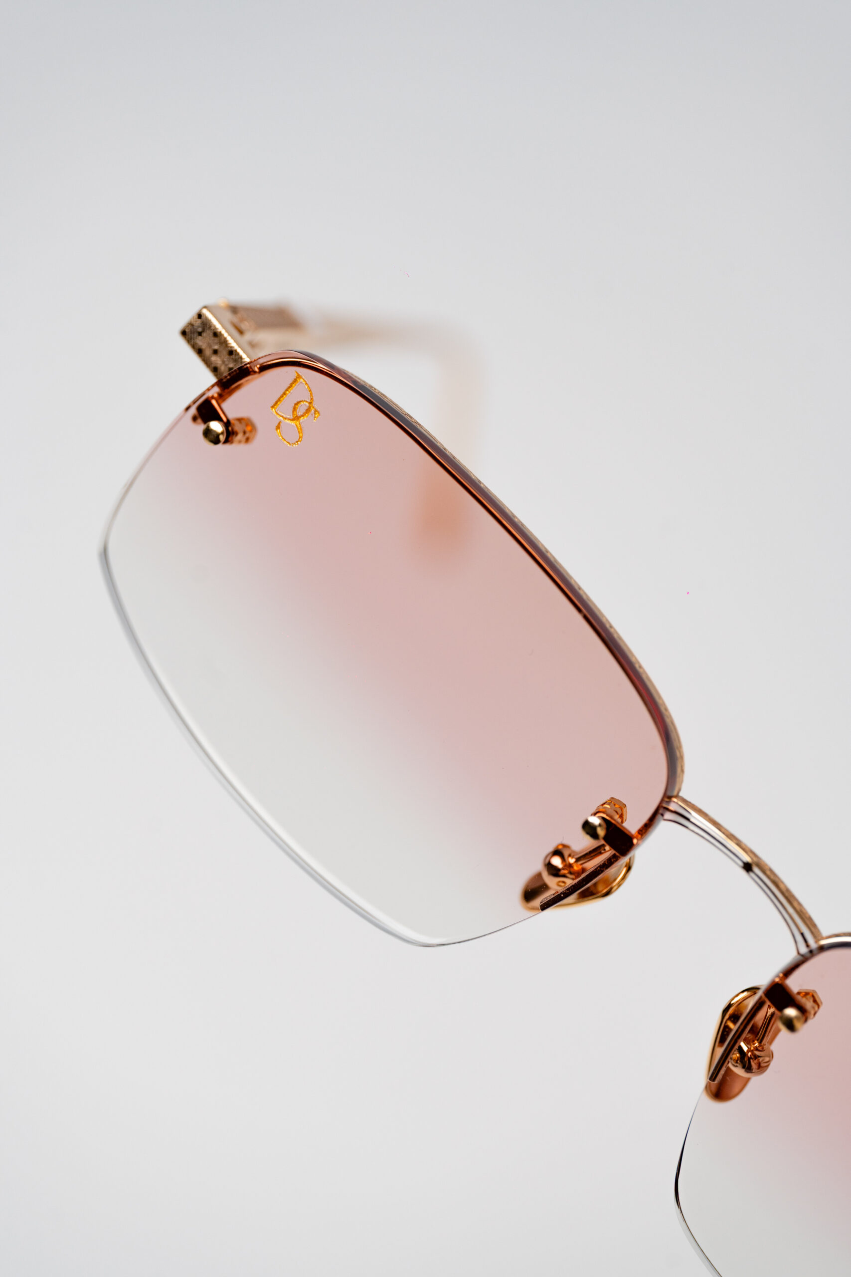 • Embouts de branches : Titane plaqué or rose 18 kt, détails raffinés