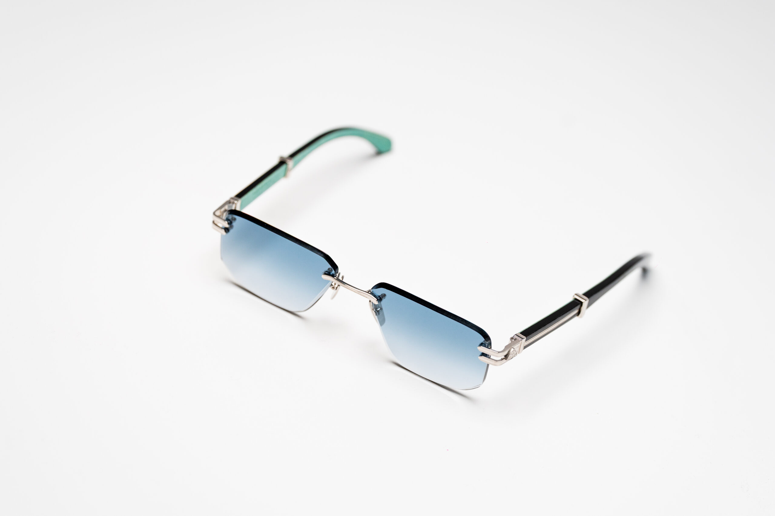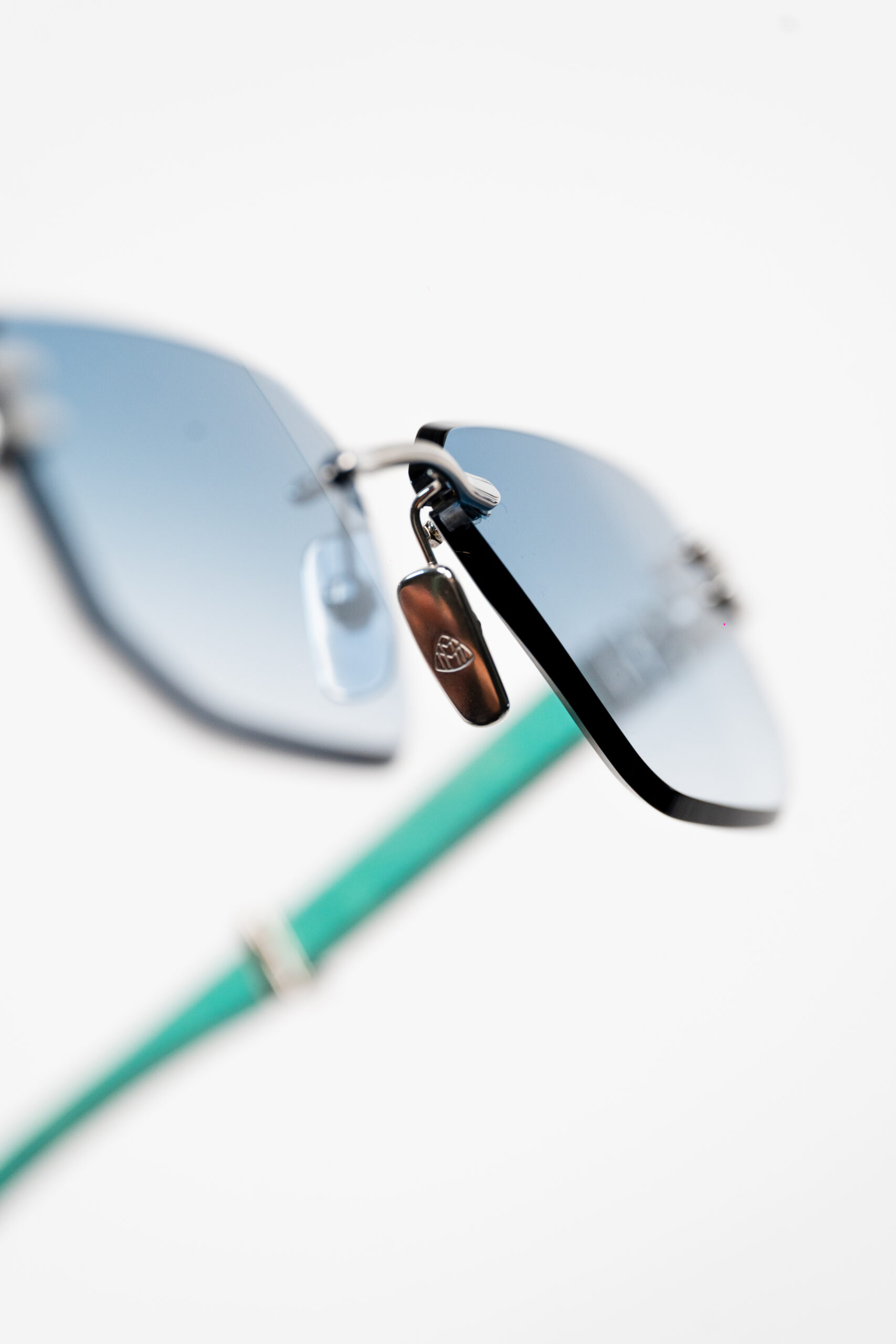 Cette version unique, percée et façonnée sur mesure, se distingue par des verres Zeiss Midnight Blue dégradés 75–25%, spécialement customisés en interne pour une forme exclusive et une profondeur chromatique exceptionnelle.