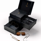 • Meuble-étui en ébène, véritable écrin de collection, intégrant des compartiments dédiés pour l’ensemble des accessoires